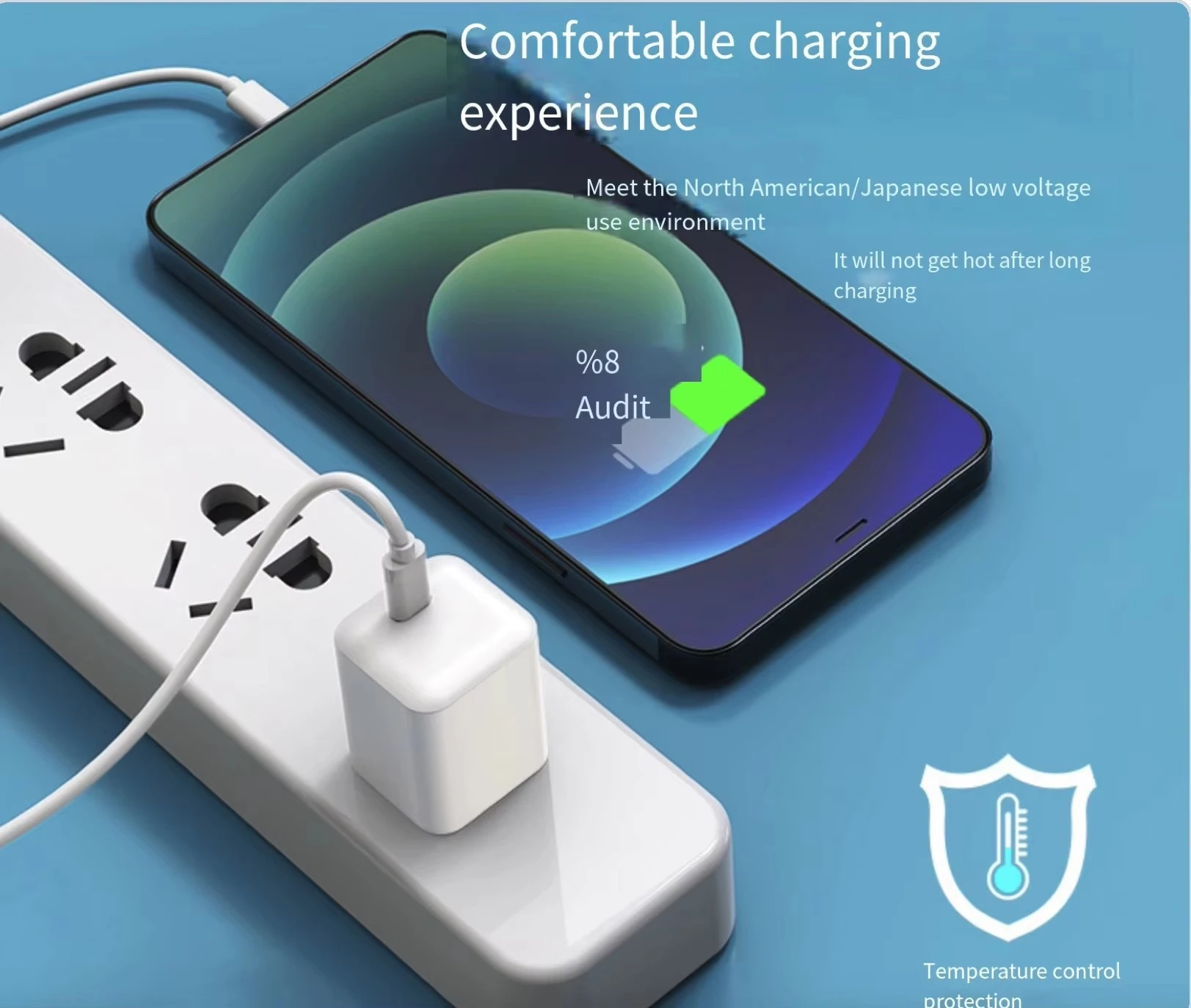 স্টারওয়েল উচ্চ মানের 20W জাপান প্লাগ কুইক চার্জার, যাকে USB-C এবং Type-C পোর্ট সহ 20W PD ফাস্ট চার্জারও বলা হয়, এটি iPhones এবং Android ডিভাইসগুলির জন্য দ্রুত চার্জিং সমর্থন করে, 30 মিনিটের মধ্যে 0-50% পৌঁছে যায়৷ এটি ওভার-কারেন্ট, ওভার-ভোল্টেজ এবং শর্ট সার্কিট সহ একাধিক সুরক্ষা বৈশিষ্ট্যযুক্ত, নিরাপদ এবং নির্ভরযোগ্য কর্মক্ষমতা নিশ্চিত করে। PC অগ্নিরোধী উপাদান থেকে তৈরি, এটি CE এবং ETL সার্টিফিকেশন পূরণ করে, EU নিরাপত্তা মানগুলির সাথে সম্মতি প্রদান করে এবং বাজারে অ্যাক্সেস বাড়ায়।