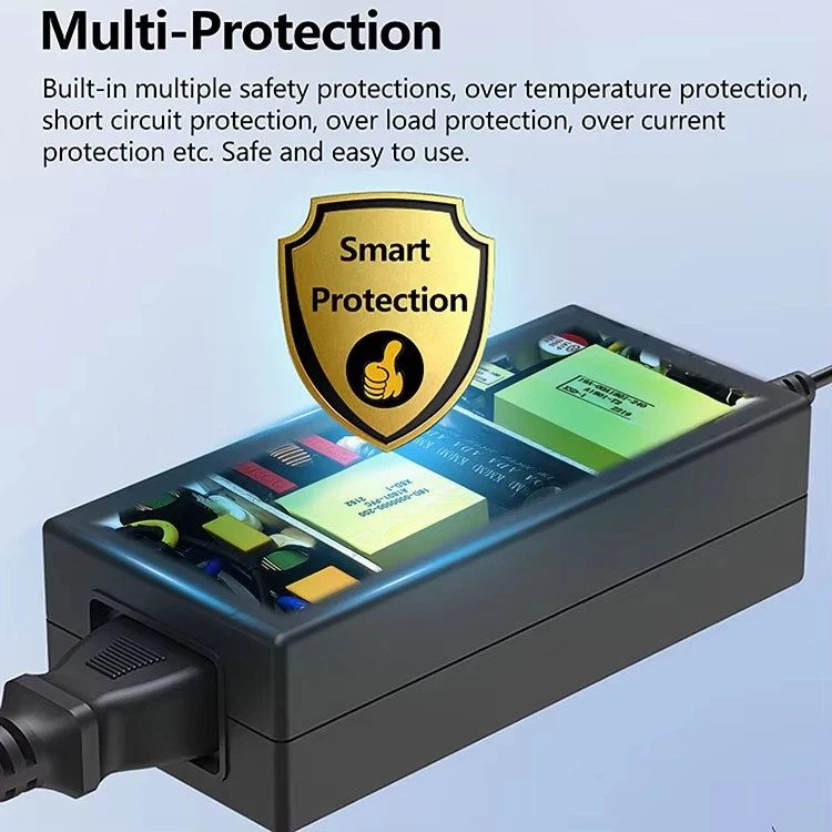 স্টারওয়েল টেকসই 24V 7.5A ইউনিভার্সাল ডেস্কটপ পাওয়ার অ্যাডাপ্টারের বৈশিষ্ট্যগুলি উচ্চ রূপান্তর দক্ষতা, ন্যূনতম লহর এবং শব্দ, এবং বিভিন্ন লোডের অধীনে চমৎকার ভোল্টেজ নিয়ন্ত্রণ। হাউজিং দক্ষ তাপ অপচয় এবং স্থায়িত্ব নিশ্চিত করে। ব্যাপক সুরক্ষা সার্কিটগুলি ওভারভোল্টেজ, ওভারকারেন্ট, শর্ট সার্কিট এবং ওভারহিটিং থেকে রক্ষা করে, সরঞ্জাম এবং ব্যবহারকারীদের সুরক্ষা বাড়ায়।