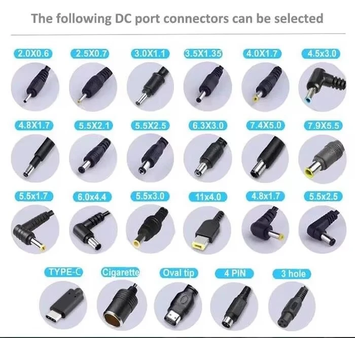 3. সংযোগকারী সামঞ্জস্যতা: নিশ্চিত করুন যে অ্যাডাপ্টারের DC আউটপুট প্লাগের সঠিক পোলারিটি (প্রায়ই কেন্দ্র-পজিটিভ) এবং ভৌত আকার (যেমন, 5.5 মিমি x 2.1 মিমি) আপনার ডিভাইসের পাওয়ার জ্যাকে নিরাপদে ফিট করার জন্য।
