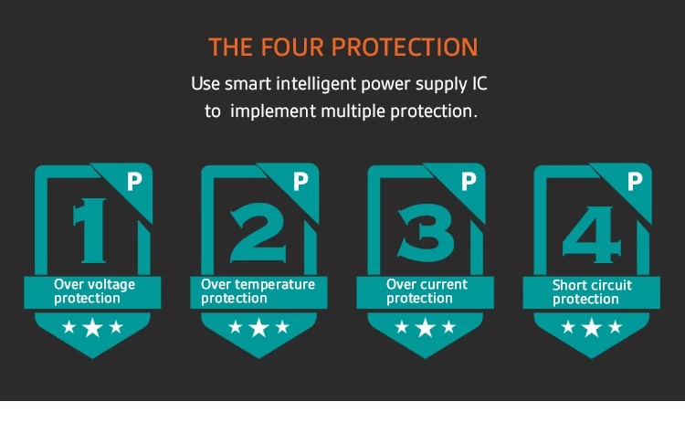 অতিরিক্ত-তাপমাত্রা সুরক্ষা, ওভার-চার্জ, ওভার-ভোল্টেজ, ওভার-কারেন্ট, শর্ট সার্কিট সুরক্ষা |