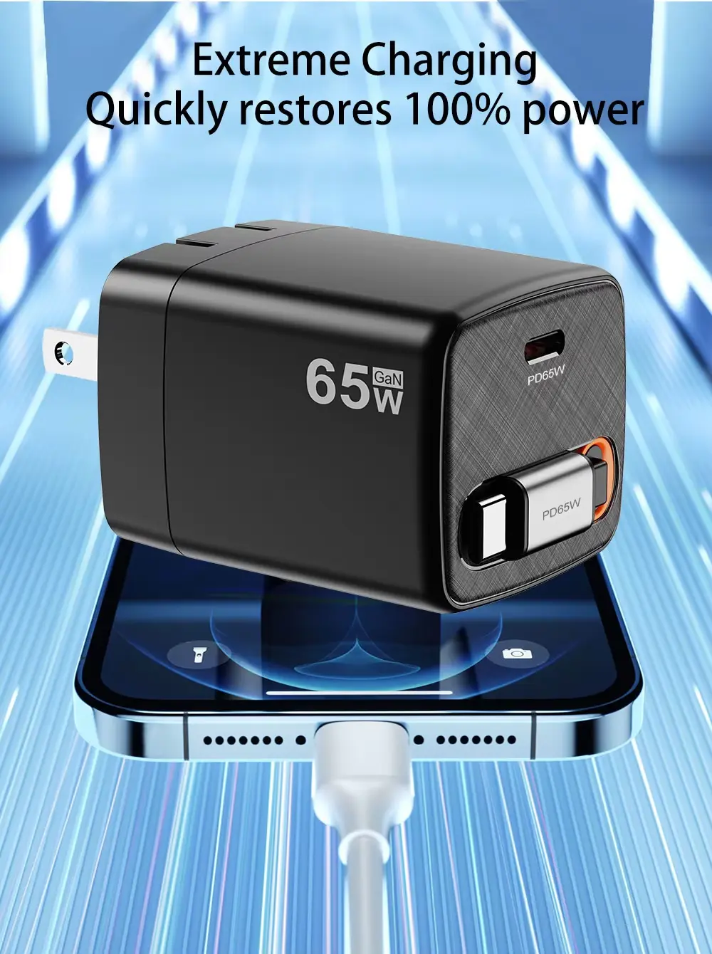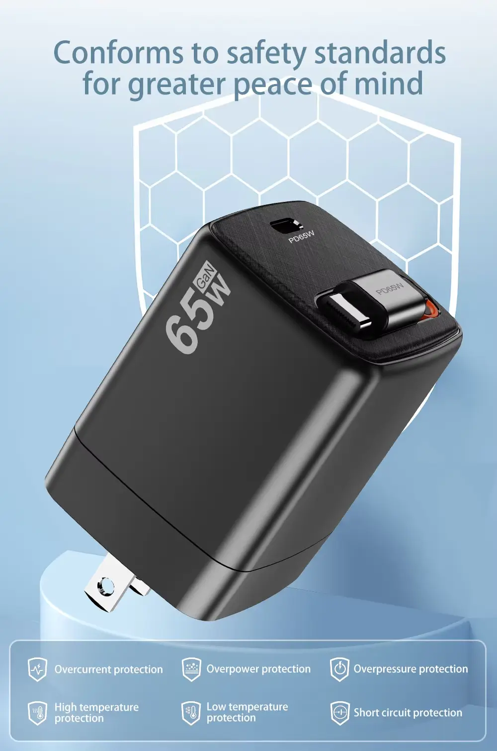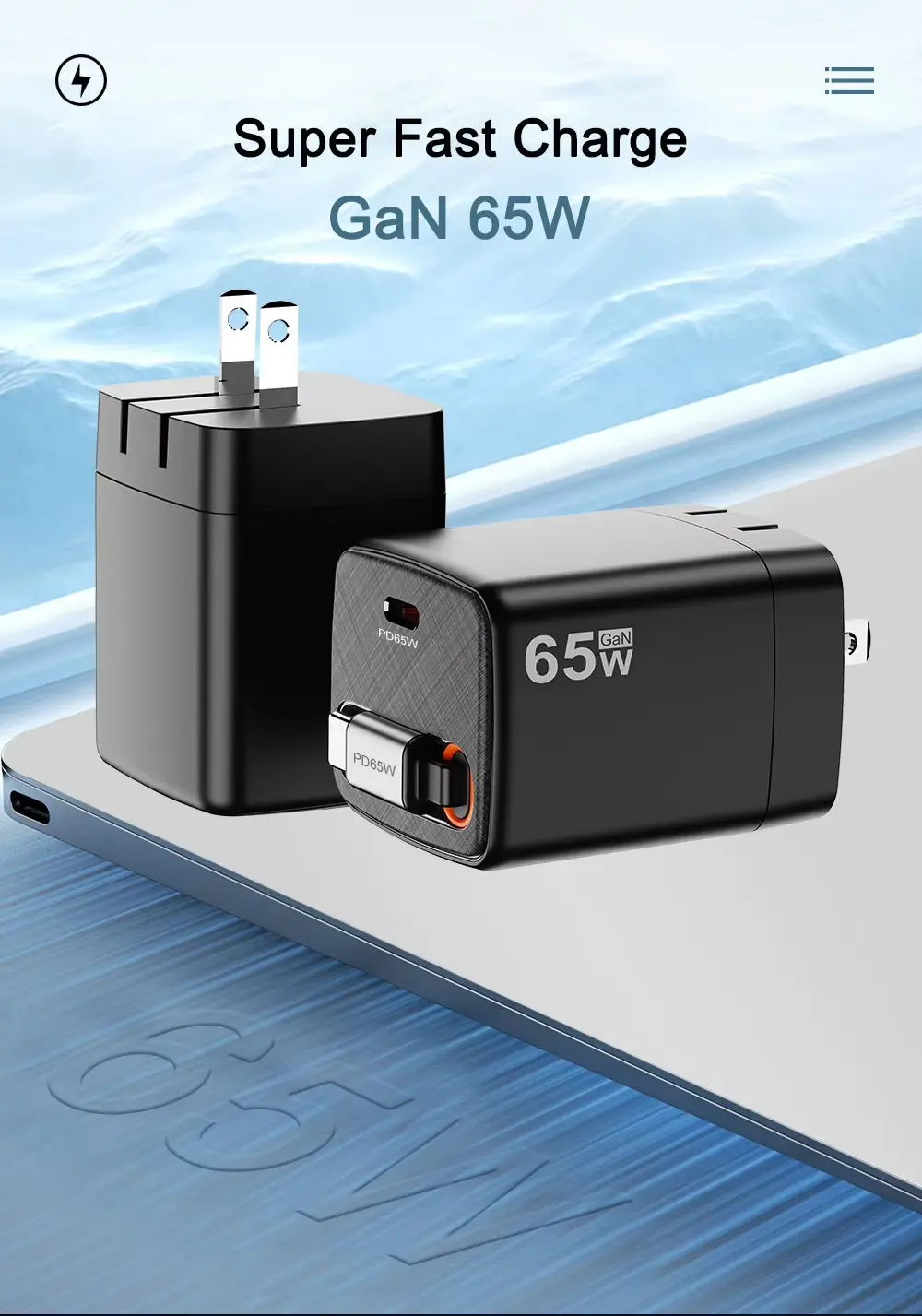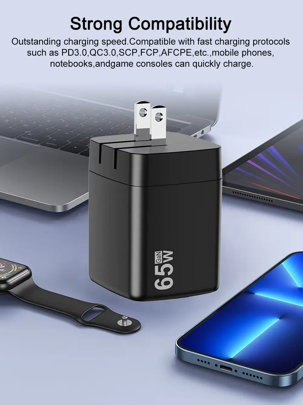 কাস্টমাইজযোগ্য লোগো মিনি 65W PD Gan USB C চার্জার ফোল্ডেবল ইউএস প্লাগ ইউএসবি ট্রাভেল অ্যাডাপ্টার ফোন চার্জার |