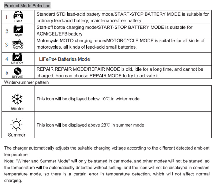 ওয়াইড ব্যাটারি টাইপ সাপোর্ট: স্ট্যান্ডার্ড ফ্লাডেড (ওয়েট), এজিএম (শোষক গ্লাস ম্যাট), জেল এবং ক্যালসিয়াম ব্যাটারি সহ বিভিন্ন ব্যাটারি কেমিস্ট্রির সাথে সামঞ্জস্যপূর্ণ, প্রতিটি নির্দিষ্ট ধরণের জন্য সর্বোত্তম চার্জিং নিশ্চিত করে।
